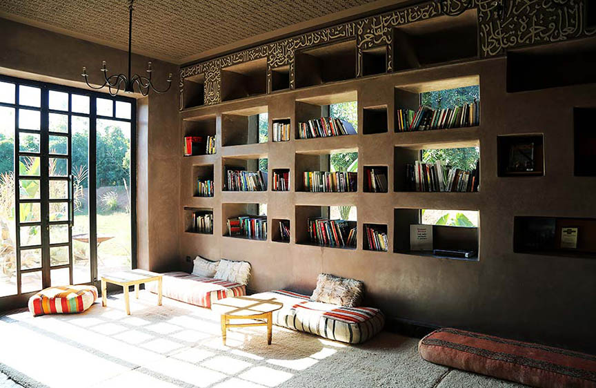Además de la vertiente artística del proyecto, esta iniciativa lleva en su impronta la sensibilidad social respecto del territorio del que forma parte. El hotel está situado en un pueblecito situado a trece kms de Marrakech llamado Akkara, y su propietario Redha Moali se ha volcado con el pueblo desarrollando un plan político y ético muy ambicioso. Entre sus líneas de acción encontramos cursos de alfabetización para mujeres y niños de Akkara y las aldeas vecinas así como un programa de traducciones del árabe a otras lenguas y viceversa.