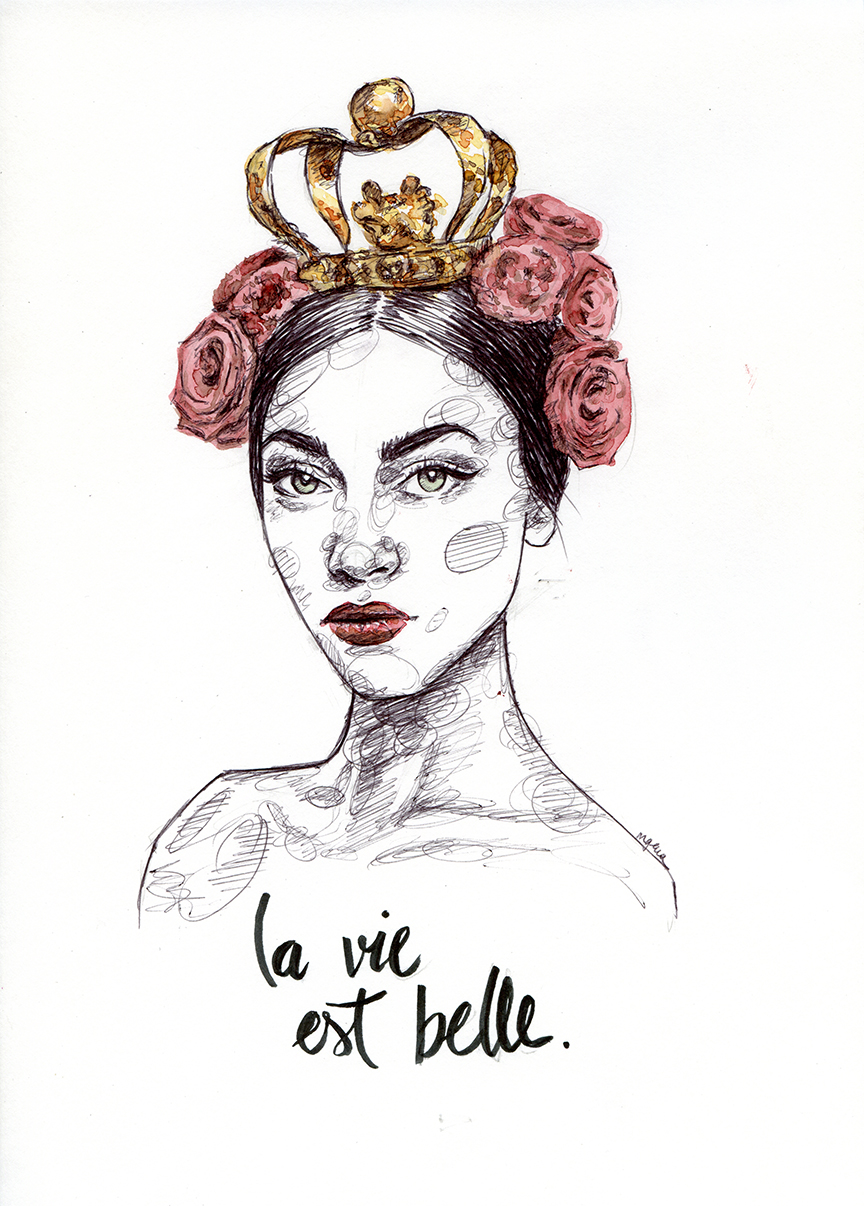 Actualmente, Mariu, que es como la llaman sus amigos, estudia Diseño Gráfico en Madrid. Y nos dice que empezó a hacer bocetos rápidos con un bolígrafo en una libreta pequeña, para después subirlos a su cuenta de Instagram. Empezaron a tener bastante acogida y un día recibió una carta de una niña que vivía en Noruega. «Me explicaba cosas que le habían pasado en su vida, y que se encontraba en una etapa preciosa. Al encantarle mis dibujos me pidió que le hiciera uno. Creo que fue donde comencé a sentarme en una mesa en lugar del sofá y empezar a dibujar en mayor tamaño y con mayor detalle».