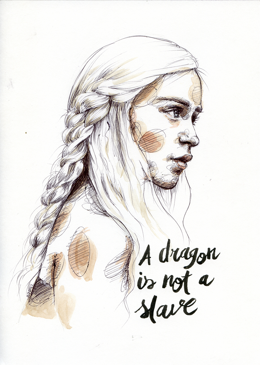 Los retratos que hace Mariu tienen cierto halo de misterio, y despiertan la curiosidad al observarlos, generando un magnetismo difícil de explicar. «Siempre he trabajado con bolígrafo directamente en el papel. Me encanta ver cómo las líneas de encaje y las manchas de sombras quedan perecederas en el papel sin tener la posibilidad de borrarlas. Siempre digo que mis dibujos son un 80%, porque me gusta dejar un 10% a la imaginación del que ve la ilustración, para completarlo. Es un proceso circular en el que participa también el espectador, y que se cierra con el 10% restante mediante las frases que escribo de lettering y le dan sentido a la imagen e incluso ayudan al espectador a completar ese proceso».