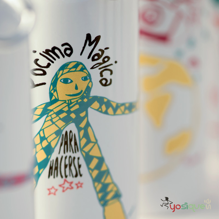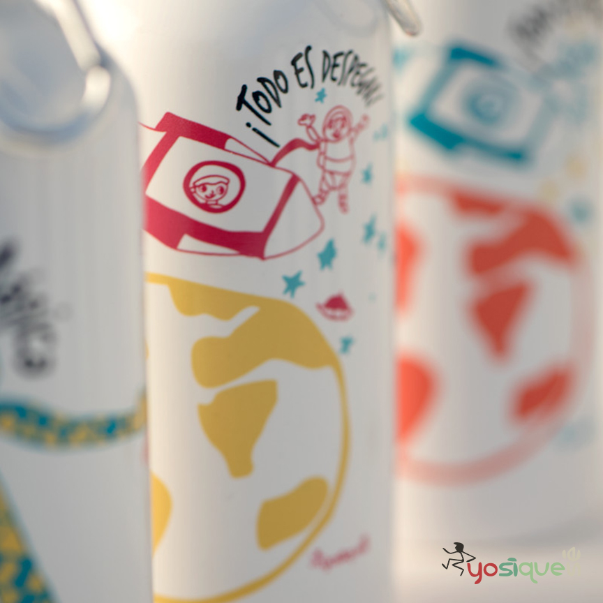 Se trata de una botella blanca de aluminio con una capacidad total de 50 cl. Es de una calidad muy buena, y tiene 6,5 cm de diámetro y 18 cm de alto. Con unos diseños bien chulos recién salidos del horno de arte yosiquesero de Fundación PRODE; donde la disCAPACIDAD intelectual no excluyen al talento único y la pasión que ponemos cada día en nuestros lápices y pinceles.
