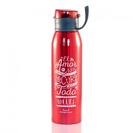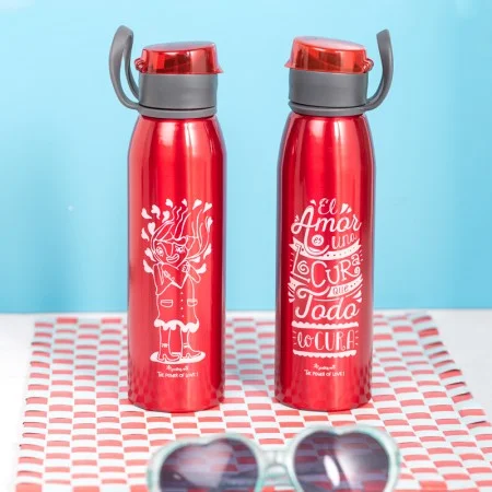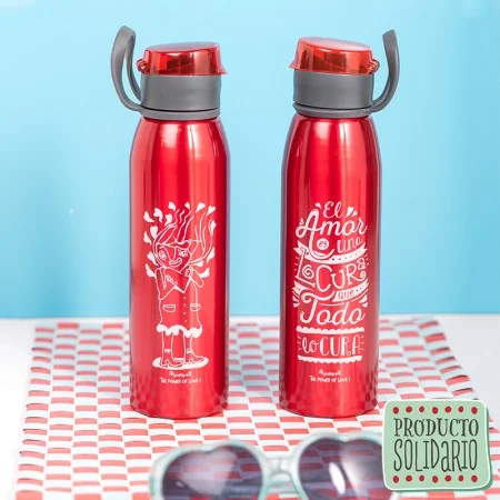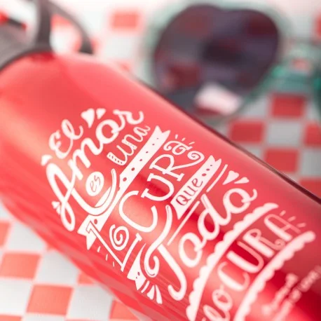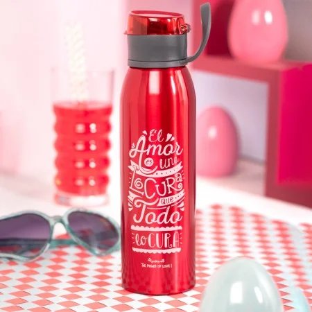 Nadie duda de que el amor lo cura todo, lo puede todo y sin él somos barcos a la deriva. Es ese súper poder que te levanta cada día con una sonrisa, que te sube a las nubes cada vez que ves a esa persona tan especial, que te impulsa a repartir besos y abrazos sin medida... Con mucho amor está diseñada esta botella de aluminio, rojo pasión. Como la pasión que le ponemos a todo lo que hacemos, sobre todo porque está dirigido a ti. ¡Te queremos con todo el amor del mundo!
