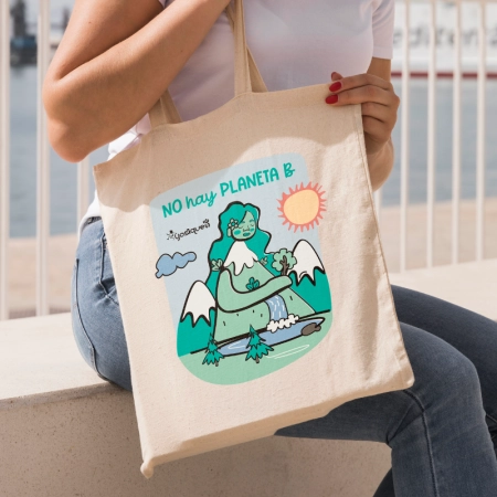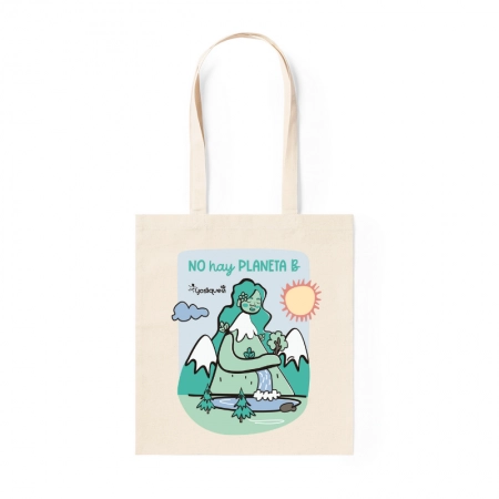 Características: Bolsa de algodón 100% orgánico y sostenible. Medidas 37x41 cm. Medidas de las asas 32 cm. Gramaje 180 gr. Lavar con agua fría del revés, no usar lejía.