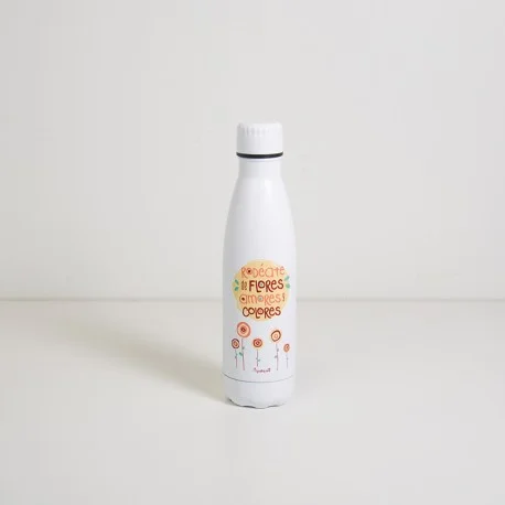 Botella blanca de acero inoxidable con una capacidad total de700 ml.
