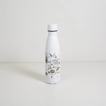 Botella blanca de acero inoxidable con una capacidad total de700 ml.