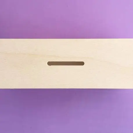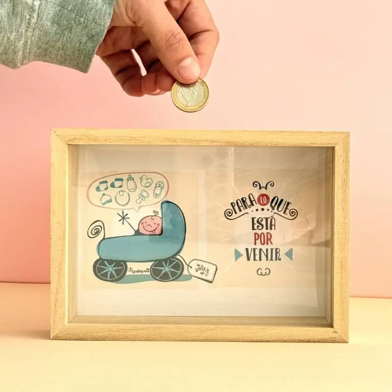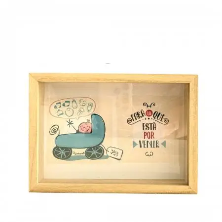Características: Hucha de madera con diseño realizado por personas con disCapacidad intelectual.