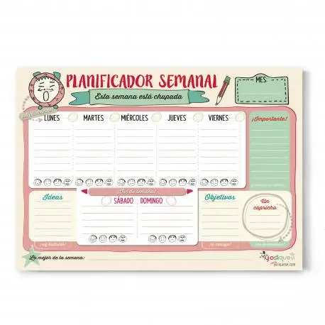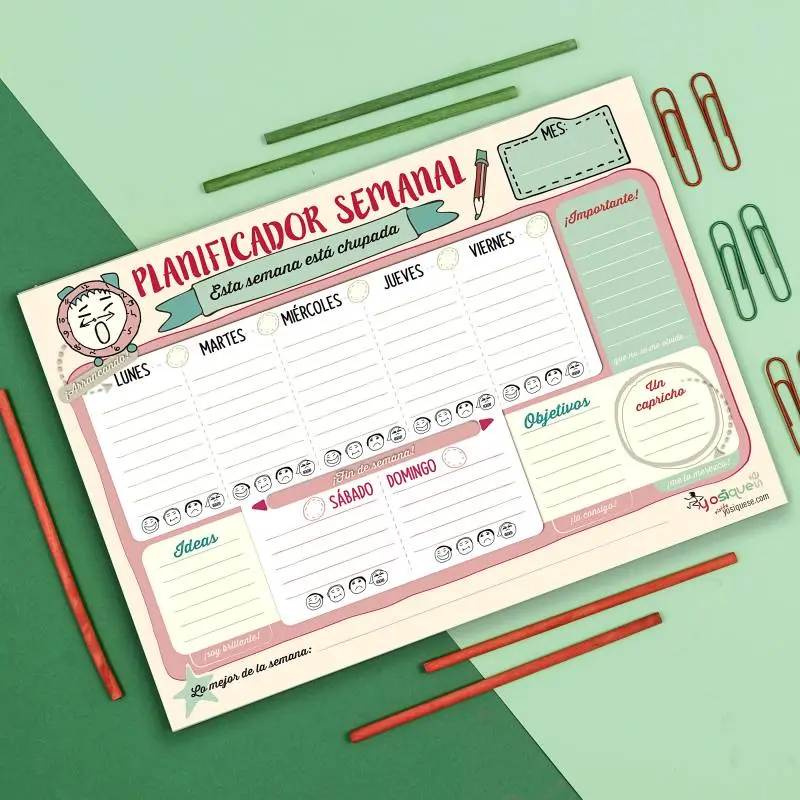 Si hay planificación, la semana está chupada. Por eso hemos pensado en hacer un planificador semanal que sea bonito, que tenga todo el arte de nuestros artistas y que además permita resumir de un vistazo las cosas más importantes de la semana. ¡Y ojo! Si conseguimos los objetivos fijados, toca un caprichito bien merecido.