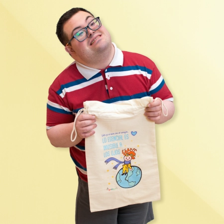 En cada puntada de esta bolsa saco, se refleja el amor y la dedicación de quienes ven el mundo de una manera única.