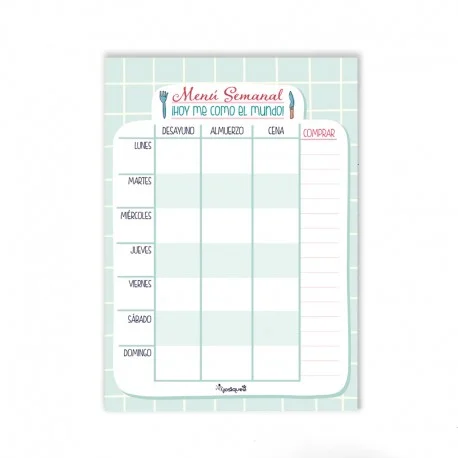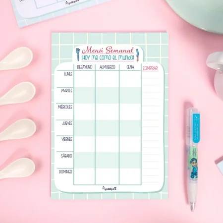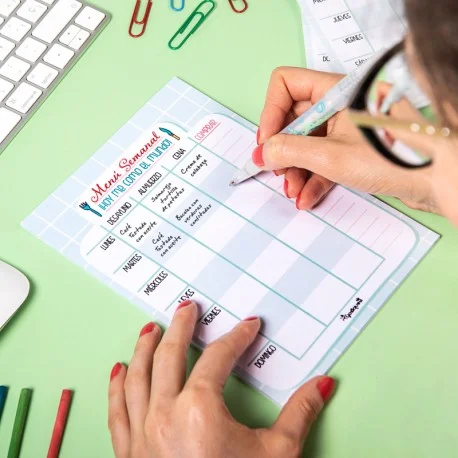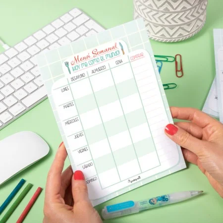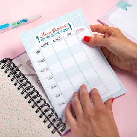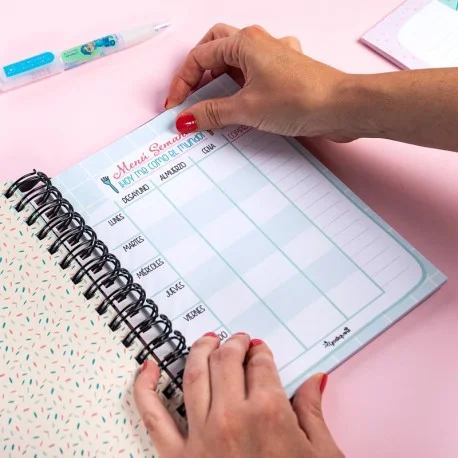 Ya tengo mi agenda escolar y este complemento me ha parecido súper útil para tener a mano la planificación de los menús de toda la semana. Además tiene un apartado para la lista de la compra. Quitas el adhesivo de detrás y queda muy bien fijado en la agenda. ¡Me encanta!!
