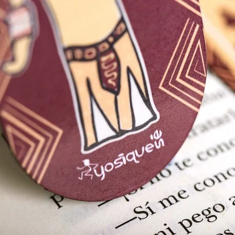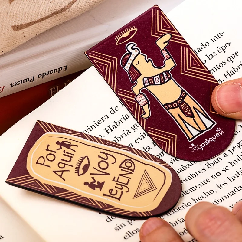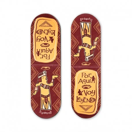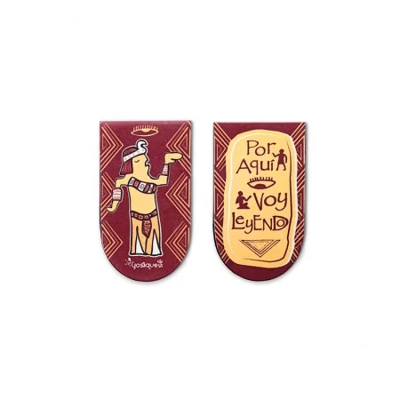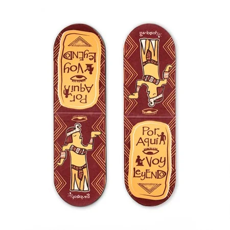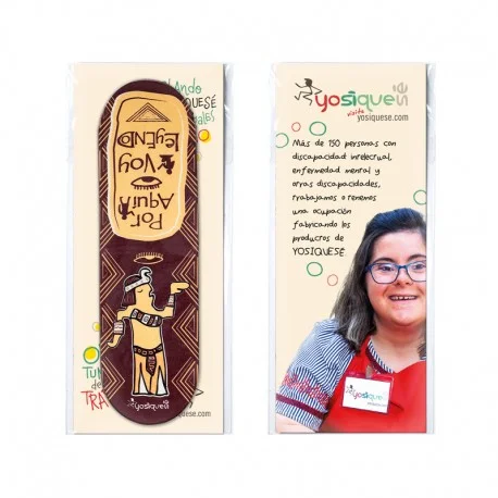 Desde el antiguo Egipto nos llega este divertido marcapáginas que te marca el punto de lectura a base de jeroglíficos. No deja de ser curioso que sea un egipcio el que te guíe en tu lectura cuando en aquella época aún no se habían inventado las páginas...¡Ups!...Será la magia de la lectura... o la de nuestros artistas con discapacidad intelectual que han sabido crear a este curioso personaje con su inagotable ingenio.
