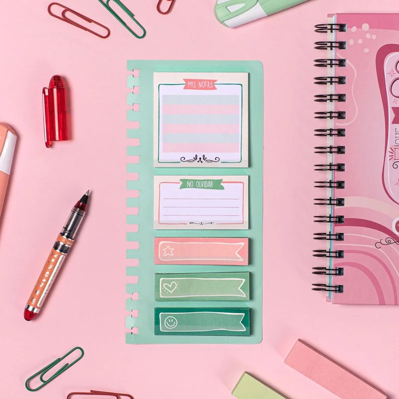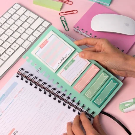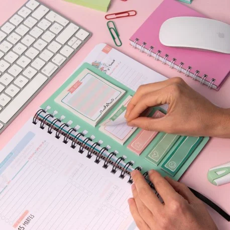 Con estas notas adheridas podrás anotar contenido extra en tu agenda sin que se te olvide nada-de-nada. Sabemos que siempre aparecen cosas de última hora y, que a veces necesitas un espacio extra para anotarlo. También que en ocasiones surgen ideas adicionales que no quieres dejar escapar y que conviene resaltar de alguna manera.