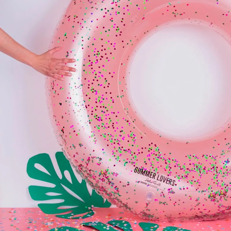 ¿Quieres ser el más glamuros@ de la piscina? Saca tu lado más brilli brilli y deja a todos deslumbrados con este colorido donuts…es perfecto para ti. Una explosión de purpurina de diferentes colores, que baila al son del agua. Música a todo volumen y sumérgete en este mar de purpurina ¡Brillarás con luz propia!